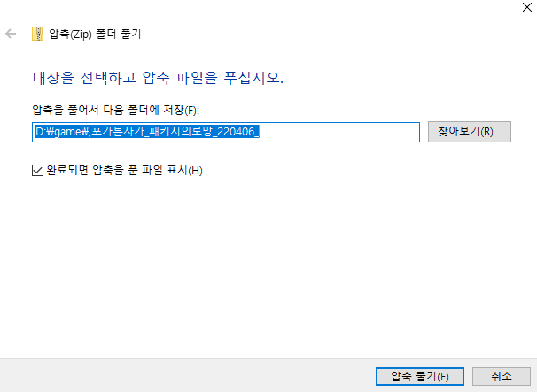 포가튼 사가 패키지 로망 다운로드하셨으면 ZIP 압축은 기본 윈도 운영체제에서 풀 수가 있습니다. 우클릭해서 압출풀기하 셔서 본인이 원하는 해당되는 폴더에 지정해서 풀어주세요.